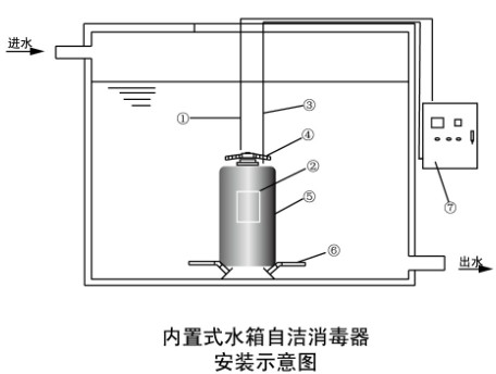 首先將自潔消毒器的循環(huán)水缸置于水箱的中下部,水箱的水循環(huán)均勻。當(dāng)水位達(dá)到液位計(jì)設(shè)定的高水位時(shí),電控柜開(kāi)始啟動(dòng)高壓電源和潛水泵所產(chǎn)生的強(qiáng)氧化氣體經(jīng)管路,至曝氣部分;對(duì)水進(jìn)行曝氣消毒,同時(shí),潛水泵將經(jīng)過(guò)消毒的水送回水箱,使停滯的水循環(huán)起來(lái),如此循環(huán)下去,對(duì)水徹底的消毒。本產(chǎn)品出廠前,已將時(shí)間設(shè)定好,用戶無(wú)需再設(shè)定。