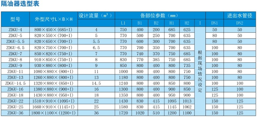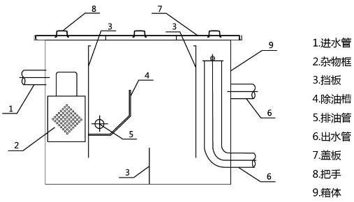 注:1、隔油器分為明溝式隔油器、管道式隔油器,地埋式隔油器。